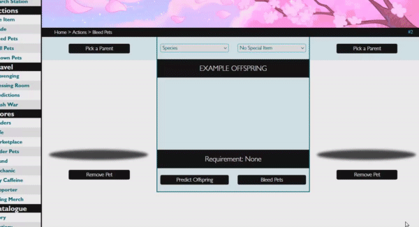 Use the species dropdown to ONLY show pets of one particular species. Selecting a pet automatically sets this!