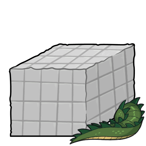 Glunks resemble blocks the size and shape of bricks coated in moss. Glunks are capable of slowly moving along surfaces, but will rarely do so in their life. Even in mortal danger, glunks will often just hold still. Due to the glunks natural generation of electricity, some places use them to power buildings.