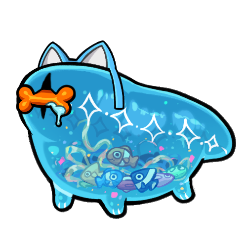 Wugs are semi-transparent, stumpy, gelatinous tunicates, beloved as luxury pets. Their simple and squishy form lacks a skeleton, but the pressurized fluid suspends their colorful organs in place, and holds their shape well enough to barely support locomotion.