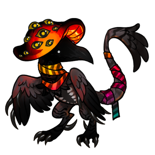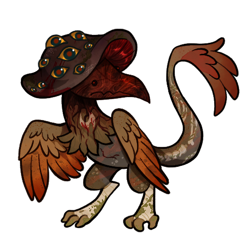 Mushbirds are apart of the Mycoincubito family, a close relative of the Mycoallum, or clockwork family. While mushbirds, and their related members are peaceful compared to clockworks, they do carry the same goal of spreading as far as possible. This species is highly affectionate and will perch on and nuzzle their owners often. After their owner dies their corpse burst into a fungal network of mushbirds ready to take flight. It should be noted that mushbird spores do not cause the demise of their owners as the fungal infection only becomes active upon death.