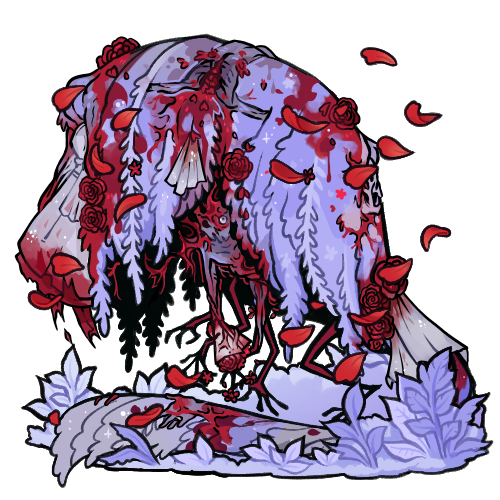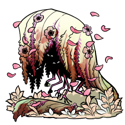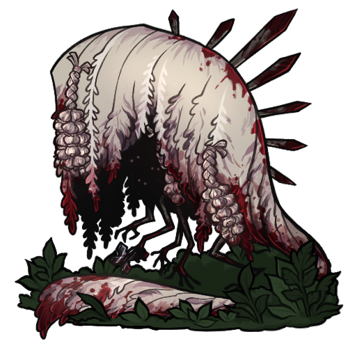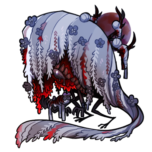 Camimos are cousins of the gemimi. Instead of evolving intelligence, this fauna has evolved a large size and predatory attitude. Disguised as a tree, the camimo will impale their victims with their sharpened limbs and either mount them on a branch, or leave them out to rot. Camimos are unable to chew most fresh flesh and instead rely on insects and rot to break down their meals into an edible form. Areas where camimos live are called "the piles" due to all the body parts strewn about.