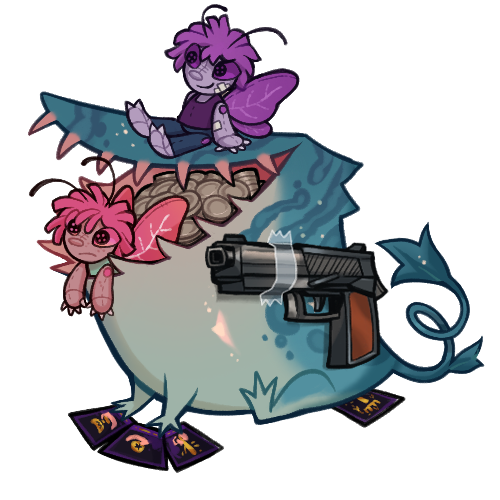 Wumpies are beloved and amazing starter pets. While they're not very smart they are highly loyal as long as they are fed. When a wumpy is hungry it will keep its mouth open and a sweet aroma will emit from it. Do not be tempted to drink the forbidden wumpy juice. The corrosive acid contained within, while sugary and very fragrant, will cause burns.