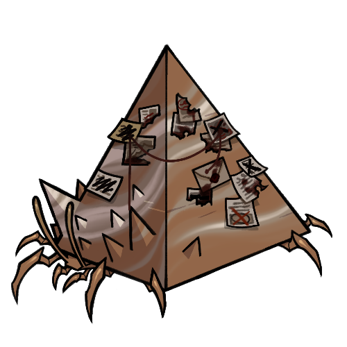 Monuments are an ancient fauna spread throughout the universe billions of years ago by an extinct species. Monuments cause a sense of intense wonder and inspiration through their shells, which often look like buildings or notable landmarks. The archeologist profession is plagued by these creatures, as their effect is so strong it can take millenniums for anyone to notice their historic landmark is in reality a crustacean. Oddly enough the great pyramids of E*rth weren't monuments but the entirety of New York City was a monumental nesting site assumed to be completely undetected by h*mans.