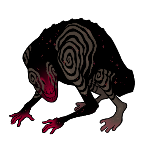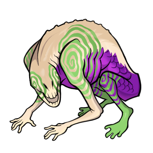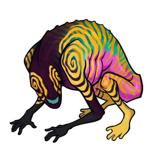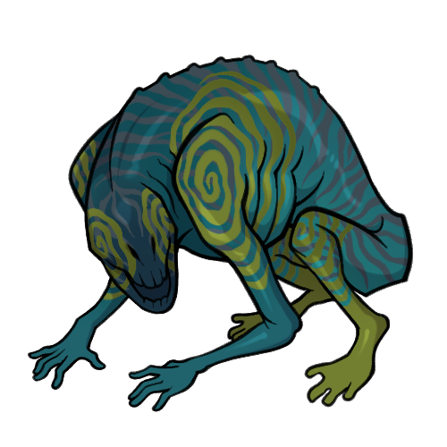 The sunkin is an amphibious animal with a robust sense of smell. During months where climbing trees nets them no food, they dive down to the bottom of shallow seas to grab corpses before slowly ascending back up. During their rise they enter into a motionless state, only clutching on to their meal. Many sailors have looked on in horror, as the sunkin's floating body on the surface of the sea is often confused for corpses.