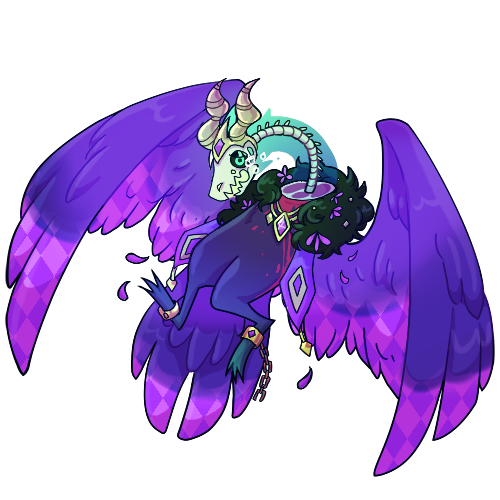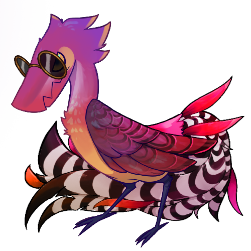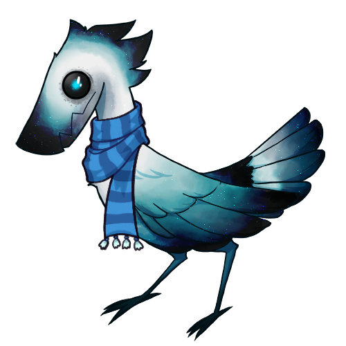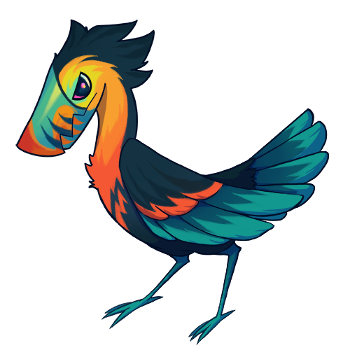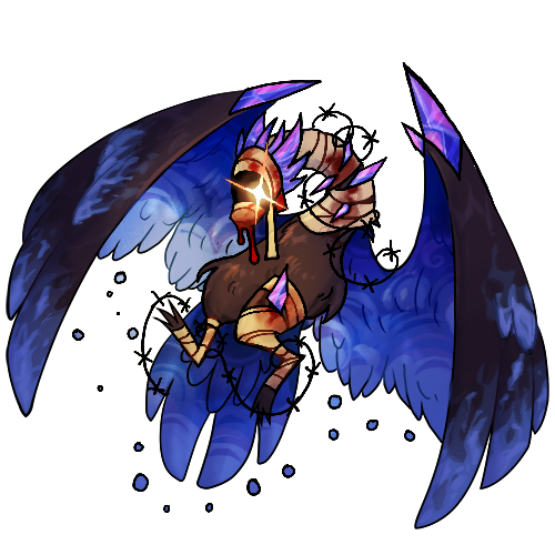 The seizing bird is pitch black, appearing to be more of a shadow of a bird than the body. The only part of this creature that isn't black is its wings. The wings are white by default but are quite special, for in an instant the seizing bird can change the color of its wings, rapidly if it wished. The color produced tends to be quite bright, with the wing producing some surprising bio-luminescence.