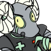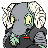 Vejovis's face doesnt move, it cant move. But he is frowning.