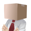 It places a paw on Shorty's head and ruffles their fur, then points at Boxman.