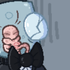 "Poow pow." She gently nuzzles her wandettle, since her arms are too short to pat it on her back.