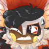 Hawkmoth slips on the hot sauce she dropped before. She is now covered in hot sauce.