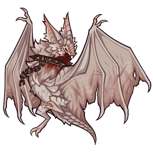 Bloodfang, still unsure of his body change, attempts to hop on his owner as he normally would, and instead tosses him to the floor. He sniffs his owner as an apology. The Skeleton King doesn't care, holding and petting the head of his newly transformed Bloodfang with joy.