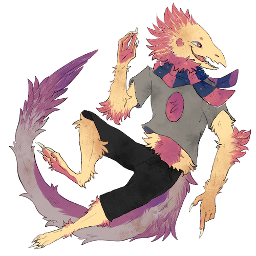The aftik is a bipedal raptor like creature, with most of them being around 5-5’6 feet in height. Aftiks are covered in sturdy feathers including its iconic “crown” on its head. They have a “guiding light” on their chest; this is just an oval that most aftiks are spiritually attached to.