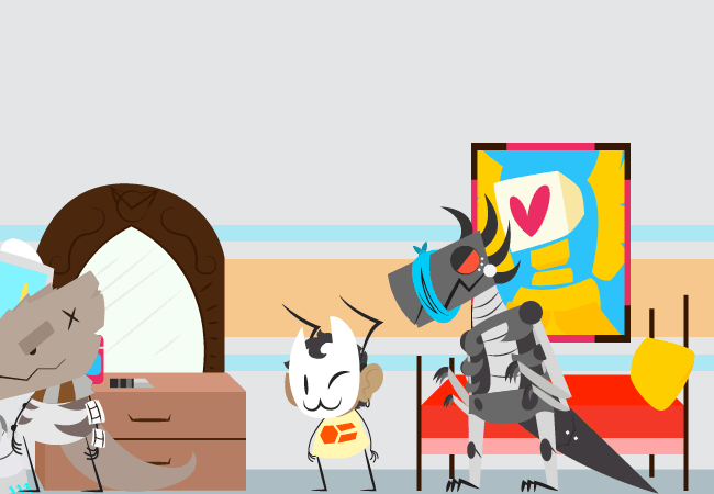 Hermes seems to have entered the room at some point and appears to wish to do or say something, but is quickly pushed out of the room again by an angry Noverus.