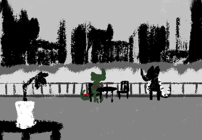 Noverus opens his eyes. It's her. This was the day he blew his date. Just looking at her makes Noverus feel...off. She's not normal, she doesn't even look normal. Noverus knows better than to sit at the table and closes his eyes.
