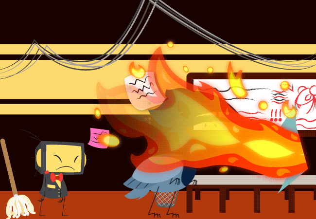 Apollo turns around only to watch the tweep engineer go up in flames.