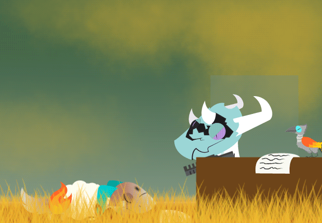 The sheep jumps in for another attack but is stopped by shot to the head by Kelda. She sighs in relief and goes to collect the body for food after a quick hop over the flames.
