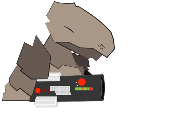 [Dwayne presses the switch to fire, but the gun refuses to. It instead opts to make strange sounds and shake. Dwayne is unable to talk like most of his kind and makes hand signals to Leonard to tell him the gun was malfunctioning.]