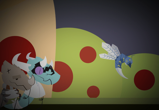 The insect finds nothing interesting about the two and promptly buzzes off.
