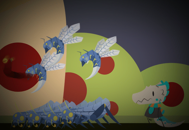 Cobalt grabs Apollo. He attempts to cling to her but is no match for Cobalt power. Cobalt flings him in hopes of distracting the arc wasps and crickets. It works.