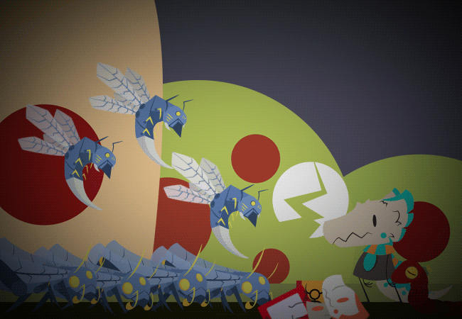 Suddenly the inventory bursts and the items that were being carried came flying out along with the bugs. Cobalt's inventory system was now unusable. It seems that the insects fought their way out of it.