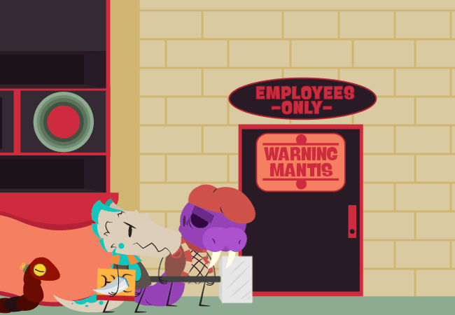Fergus stands in front of the employee’s only door. The door could easily be shattered with a good swing. Cobalt didn’t want anything to do with it, and just wanted to get out of there.
