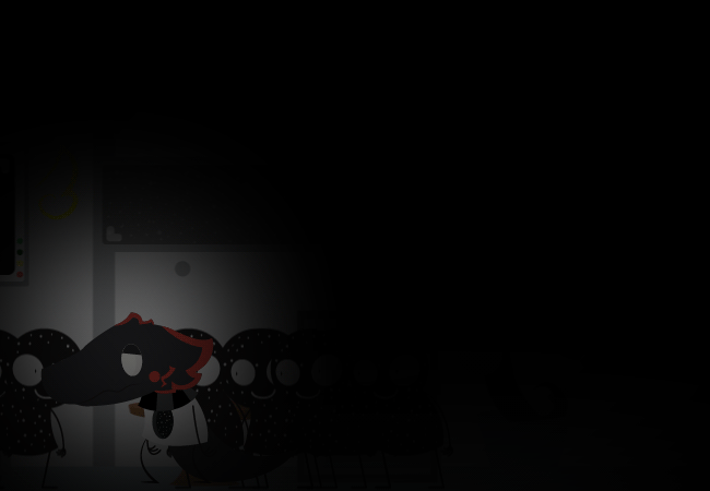 Crimson turns away from the Extral. Crimson didn't like talking about the guiding light. Most aftiks have them from the moment they are born and it tends to hold great symbolic value to the aftik. Captain Crimson used to have a red light, but over time it faded, turning black with small flecks of white in it. Many people would comment to Crimson that it looked like a void in him.