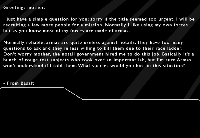 [Marble decides to check out Basalt’s email. She thinks over the situation. Notails were very affected by mind-based attacks, so there needed to be mind base attackers for sure. Notails are also great swarmers. They made up for their lack of power with pure determination and smarts. Basalt would need a species that was just as good as swarming as they were.]