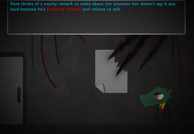 Slate thought of a snarky remark to make about the situation, but didn’t say it out loud because he was [mute by choice] and refused to talk.