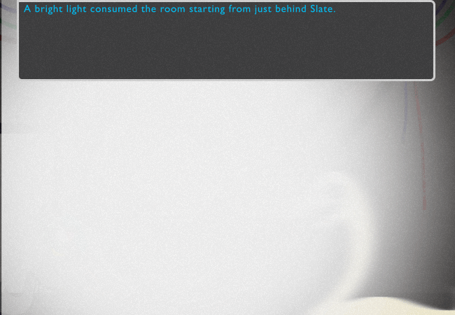 A bright light consumed the room starting from just behind Slate.
