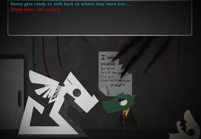 [Slate loses all of his sanity.]