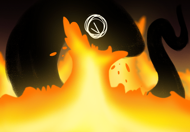 [The Sun God watches in horror as the putleys are killed in the heat, before being hit itself by the eruption. The Sun God screams in pain.]