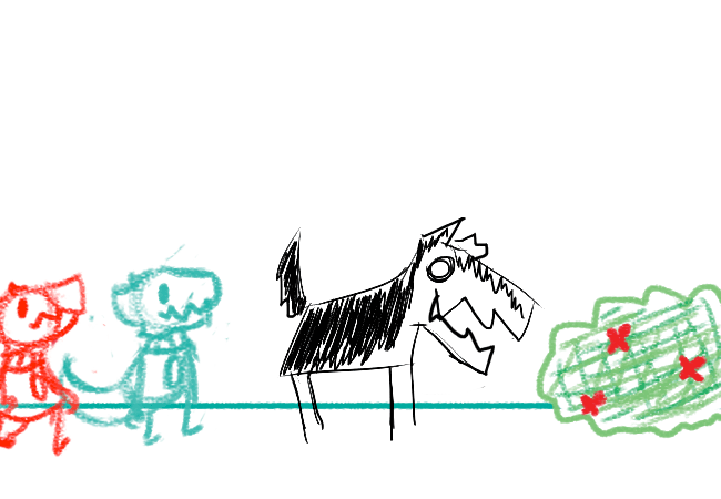 You get outside and see a doggy in your backyard. He has a messed up ear, though it looks like it's been that way for a long time. He's also barking at the bushes and seems super mad at something in it.