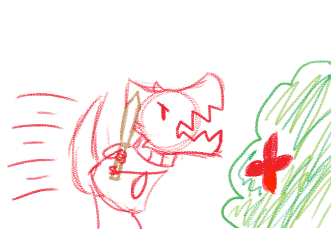 Maroon jumps at the bush sword in hand. His days of watching sword fights on TV will finally come to use.