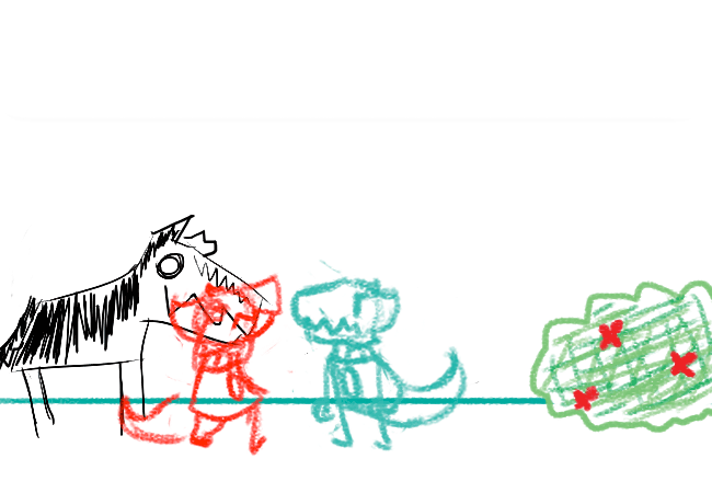He hears a small sound come from the bush and throws his sword into it before running behind you. He asks if he can just go get Azure but you tell him Azure is a busy person and it would be rude to bother her for something so small.
