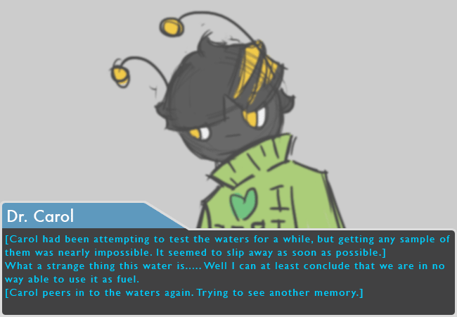 [Carol had been attempting to test the waters for a while, but getting any sample of them was nearly impossible. It seemed to slip away as soon as possible.]