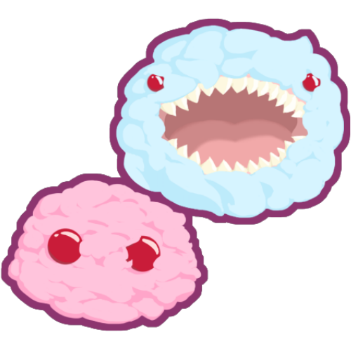 A small ball of fluffy fur that comes in a wide variety of pastel colors. While it's hard to see through the fluffy fur, they do in fact have a body and an uncountable amount of tiny legs. They have two bulbous red eyes. This mainly describes their docile cute state. When they've decided to attack, their eyes shrink down and they reveal a massive jaw filled with tiny pointy teeth which they eagerly use to rend and maim their chosen prey.