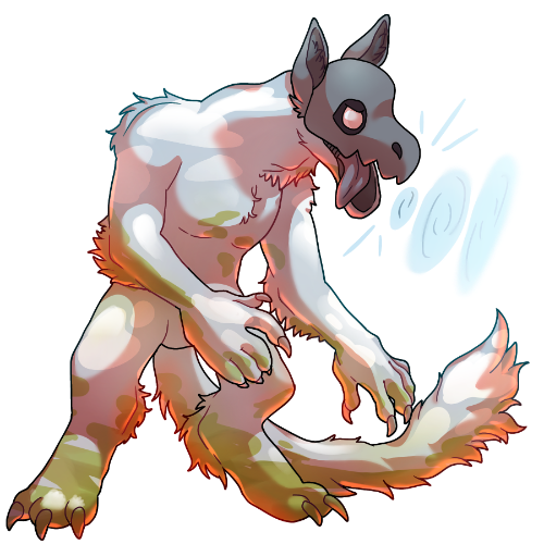 A crocotta tends to have no other weapon aside from its sound. With a body too fragile to dish out many physical attacks, the strain has evolved to sacrifice a useless lower jaw and turn it into a strange lump of skin, one with the power to manipulate the frequencies of all the sound it has absorbed in the past.