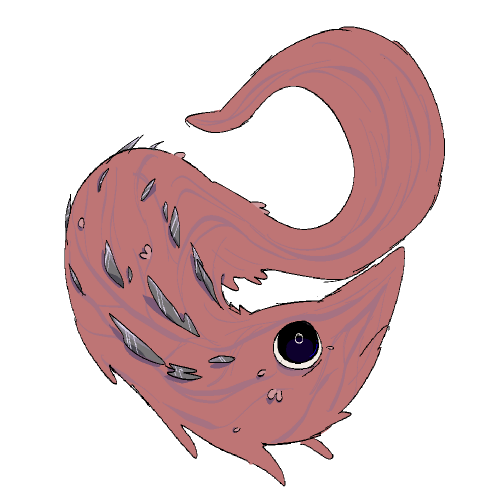 Prey: Prey leontophones are the most commonly-seen type, and the kind most commonly called simply a 'leontophone'. Small, mildly amorphous critters with two functional eyes and a long snout, these creatures actively search for predators. Their aim is to be eaten, and thus to create a host that will produce more of them, though some have been seen to simply try to merge into possible hosts, infecting them that way. Small creatures that have been infected by leontophone slime also commonly become something similar to prey leontophones. Most prey leontophones are just barely small enough to be held in a notail hand, but sizes can vary, especially if they have a large enough source of (dead) meat.