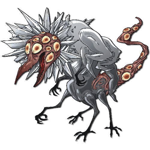 Cithaerean: Cithaereans look very similar to nemeans at first, except for a distinctive golden sheen to the metal covering their bodies. However, the metal covering cithaereans is much softer than that of nemeans. Cithaereans are able to absorb the weapons of their prey into their metal coat, and can shoot these weapons out at high velocities when threatened. Thankfully, chithaereans are a rather rare subspecies, and are commonly killed before they are able to amass a collection of weapons.