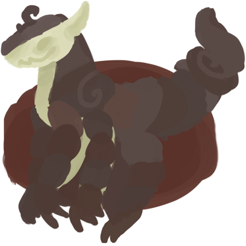The monocerii are quadrupedal large armadillo-like creatures. Having four to eight legs. They also have strong plated armor from their nose to their tail, leaving their stomach exposed. As for colors, they come in dusty browns and sandy greys. Some monocerii have been bred to have a more vibrant hue of those colors but those are quite rare. All monocerii are born with either one or two horns. Those horns are never on the sides of their heads. Only on their forehead, nose and cheeks.