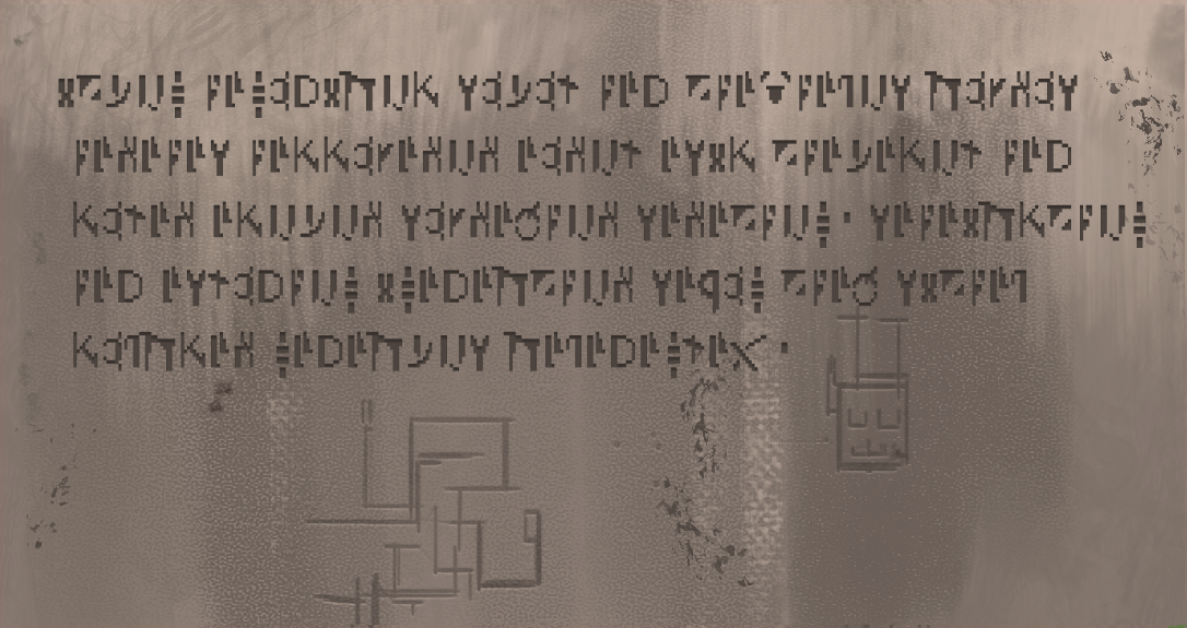 Set of pictoglyphs at site of newly carved bas-relief depiction including a notail at largest located settlement attached below.